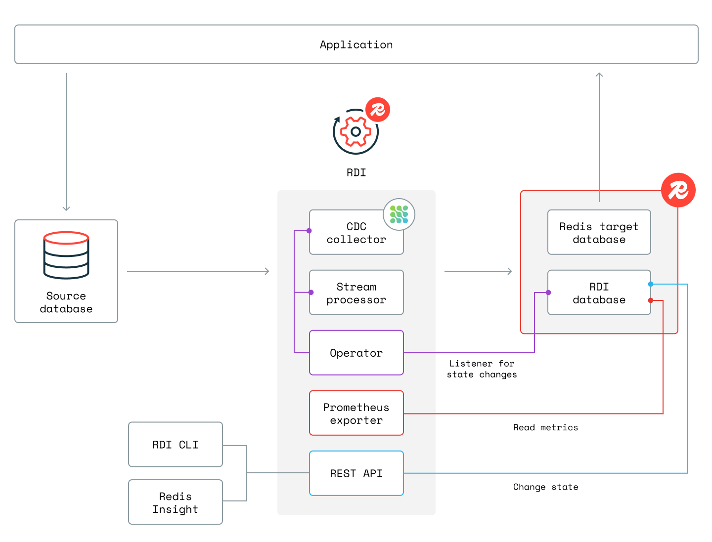 - A metrics exporter process that reads metrics from the RDI database and exports them as Prometheus metrics.