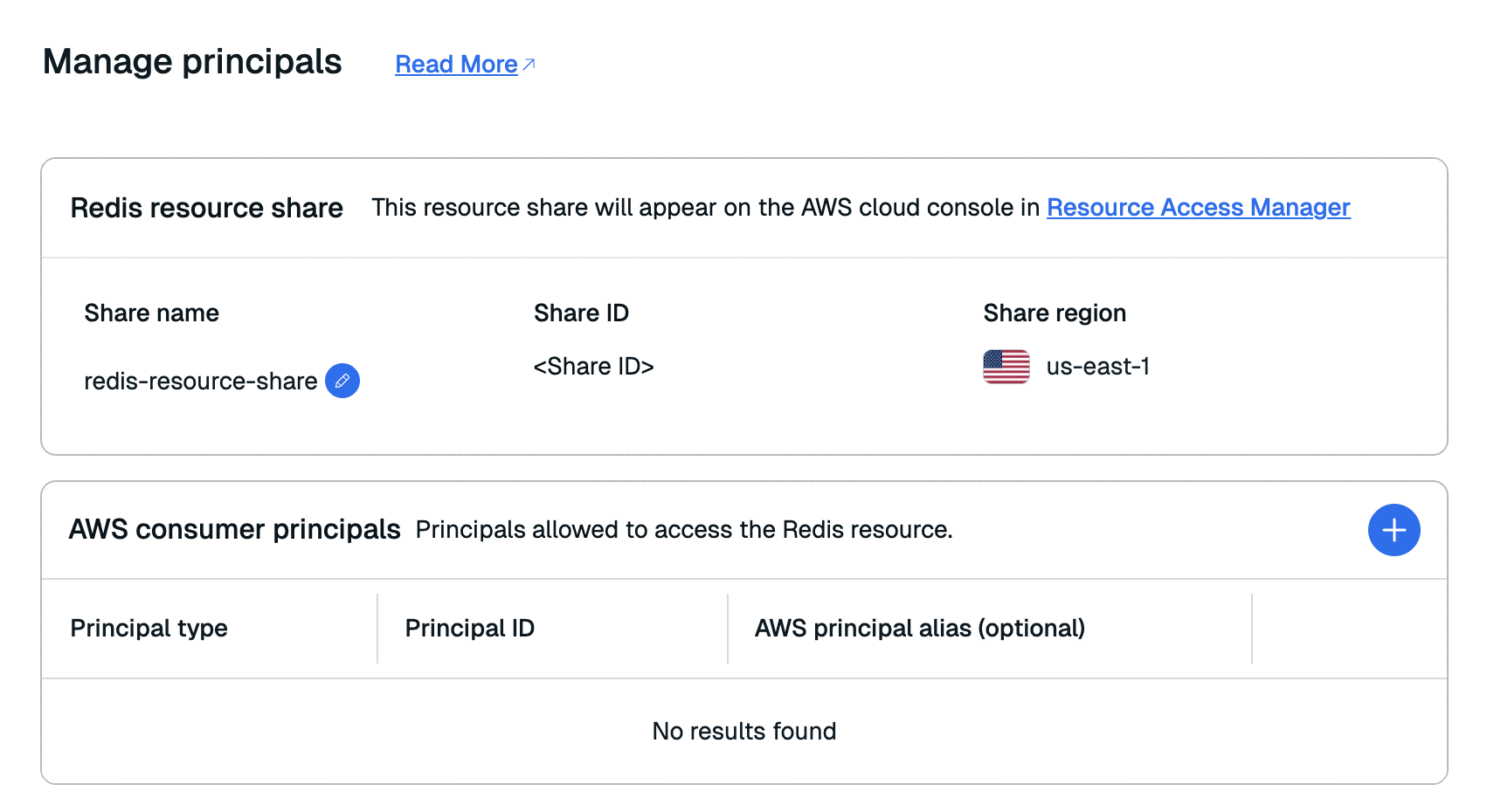- Associate the Redis Cloud Resource share with one or more AWS principals.