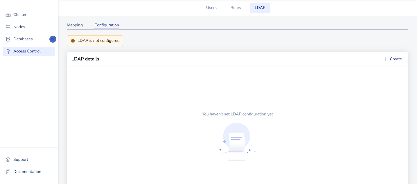 1. From Access Control > LDAP in the Cluster Manager UI, select the Configuration tab and enable LDAP access.