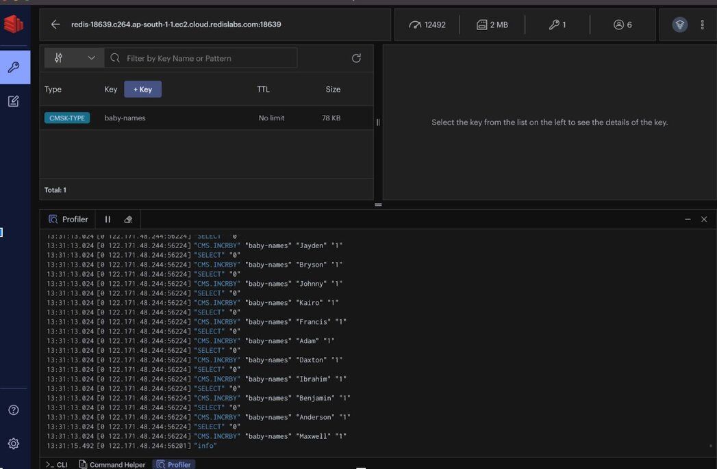 Set up Redis Insight on your local system and get connected to the Redis database. Once connected, you should be able to run the following queries: