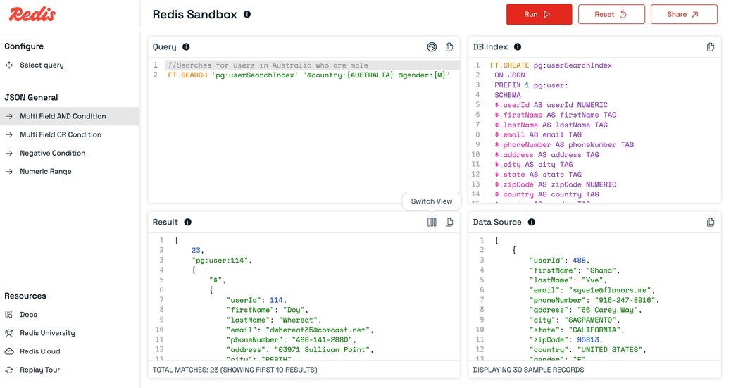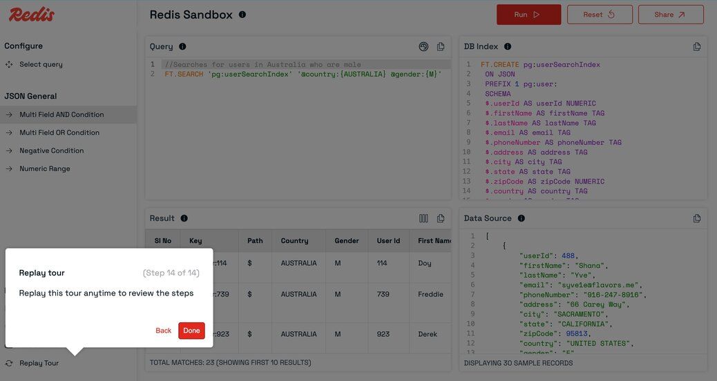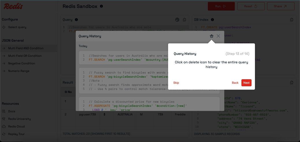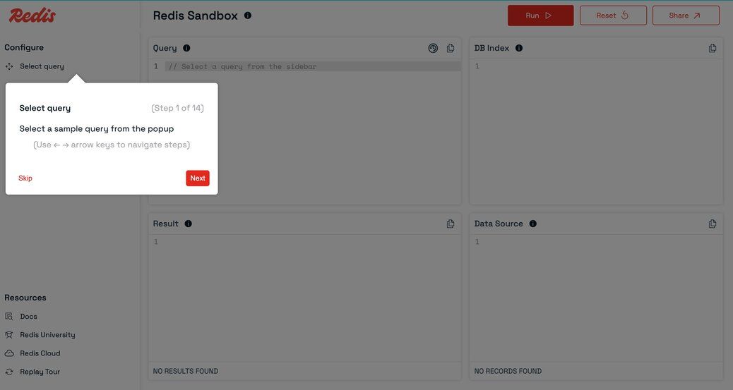 Redis Sandbox (also known as Redis Playground) is an interactive, online Redis console that lets you experiment with Redis commands in a safe, isolated environment—no setup required. Whether you're learning what Redis is, testing queries, or demonstrating features, Redis Sandbox is the perfect place to get hands-on experience and test Redis commands online.