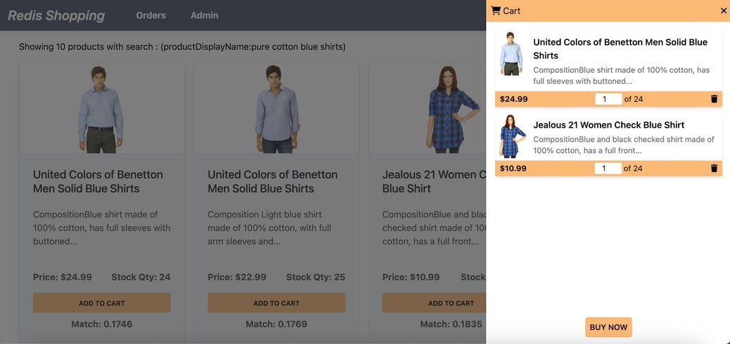 Our demo application which utilizes two primary data collections within Redis to simulate an e-commerce platform's inventory system: